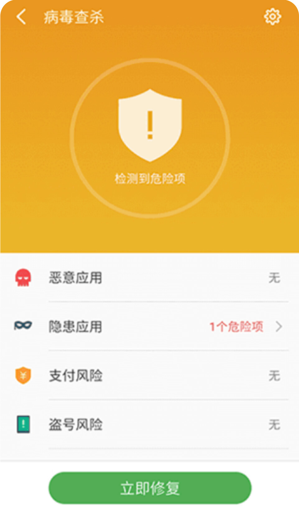检查完成后请点击「隐患应用」,不用点击「立即修复」